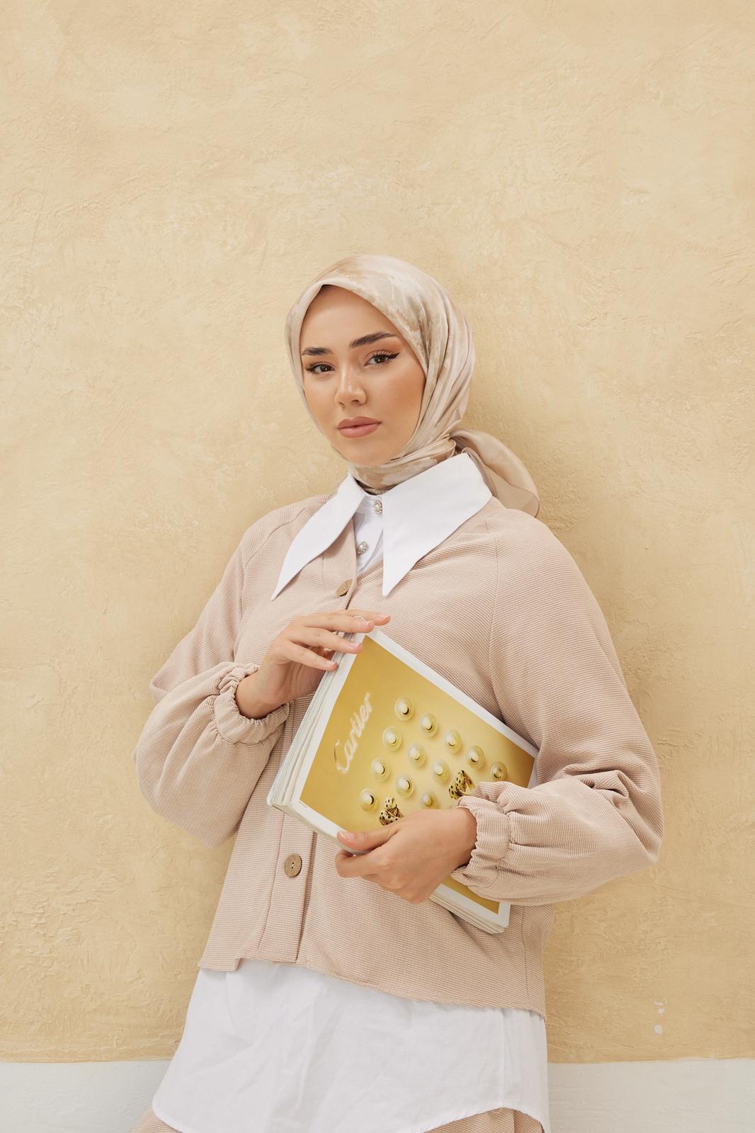 Silk Home Desenli Shiny Eşarp - 8647 - Krem Bej (8647)